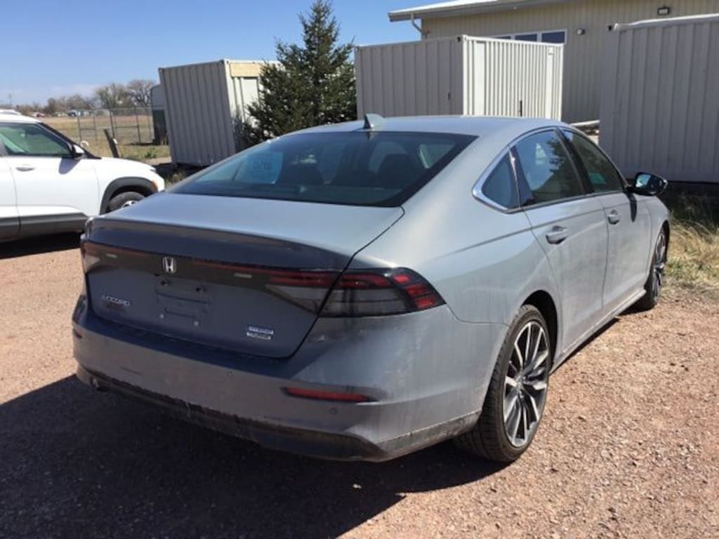 Experience sophistication and efficiency with this grey 2023 Honda Accord Hybrid Touring. Powered by a 2.0L Hybrid I4 engine and a 1-speed direct-drive automatic transmission, this sedan offers impressive fuel economy and a smooth, quiet ride. Enjoy cutting-edge technology like a 12.3-inch infotainment screen with Google Built-In, wireless Apple CarPlay and Android Auto, Amazon Alexa compatibility, and a Bose premium sound system. Safety is top priority with features like adaptive cruise control, lane keeping assist, front/rear automatic emergency braking, blind spot monitoring, and a multi-view rear camera. The luxurious interior boasts leather-trimmed upholstery, heated and ventilated front seats, heated rear seats, a power moonroof, and dual-zone automatic climate control. Stay connected and in control with HondaLink, remote engine start, and customizable digital displays. If you're looking for a modern, reliable sedan loaded with premium features and advanced safety, this Accord Hybrid Touring is the perfect fit. WE LOOK FORWARD TO HEARING FROM YOU!