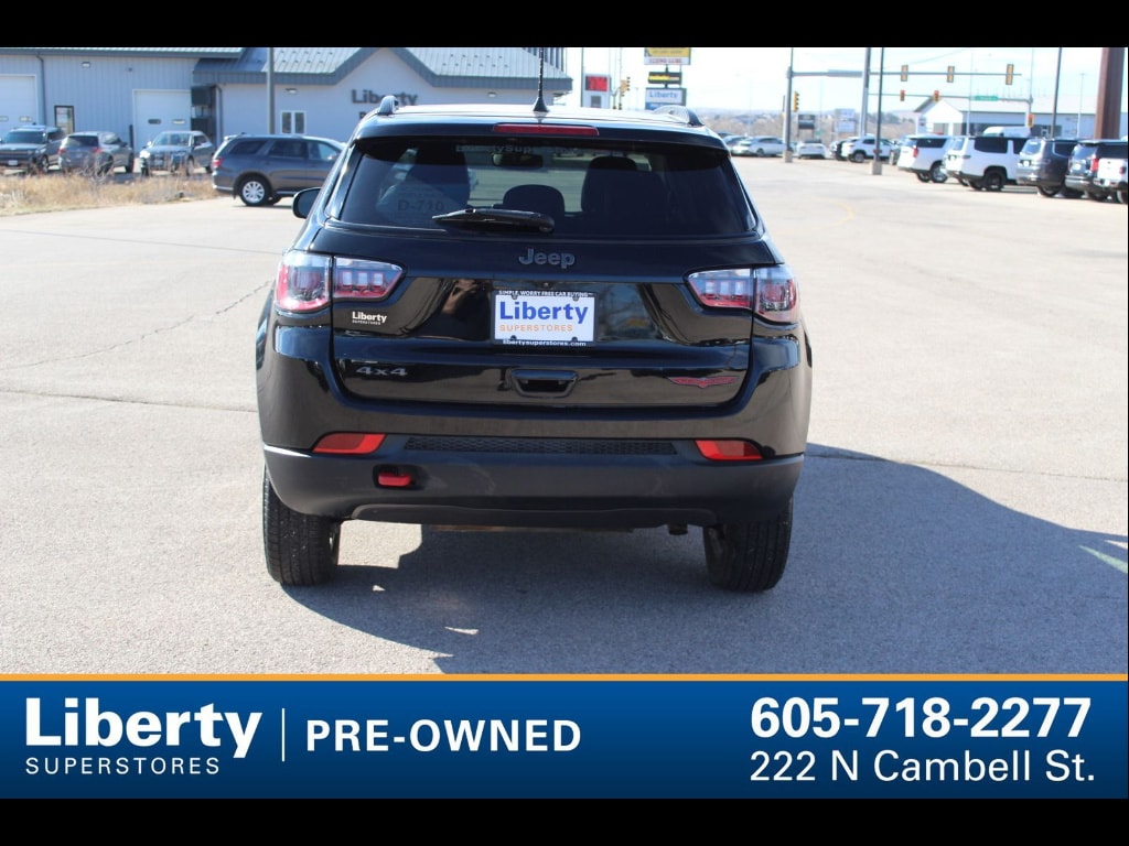 Conquer any terrain in style with this rugged Black 2022 Jeep Compass Trailhawk 4x4 SUV. Built for adventure, the Trailhawk trim features off-road tuned suspension, hill descent assist, front and rear tow hooks, and skid plates for superior capability. Enjoy seamless connectivity with wireless Apple CarPlay and Android Auto on the intuitive 10.1" Uconnect touchscreen, plus SiriusXM Satellite Radio and a Wi-Fi hotspot. Safety is top priority with adaptive cruise control, lane keeping assist, blind spot monitoring, rear cross-traffic alert, and automatic emergency braking with pedestrian detection. Premium touches include leather-trimmed upholstery with contrast stitching, heated side mirrors, and a customizable 7" digital instrument cluster. With a powerful Tigershark 2.4L engine, 9-speed automatic transmission, and legendary Jeep 4x4 performance, this Compass Trailhawk is ready for your next journey. Schedule your test drive today and experience the adventure-ready difference. WE LOOK FORWARD TO HEARING FROM YOU!